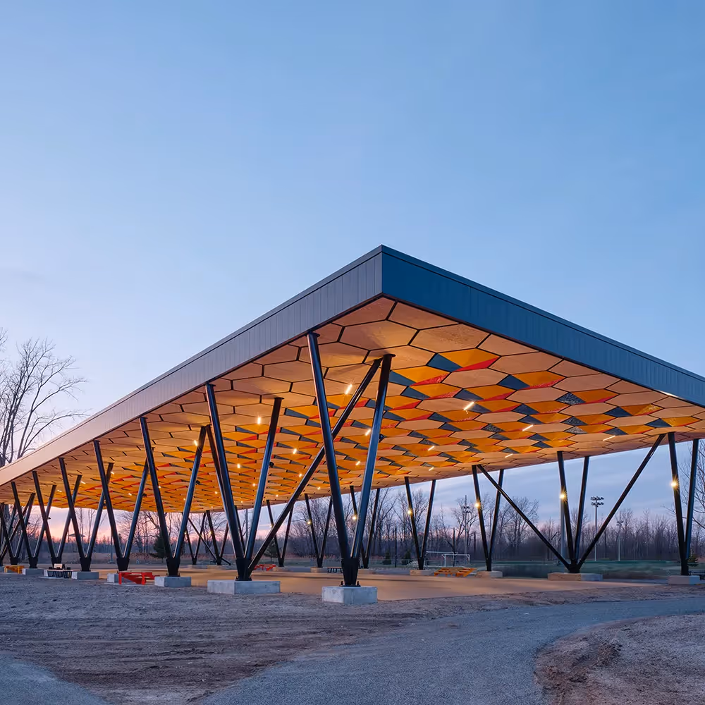 Design of the roof for the Parc Le Rocher ice rink (Saint-Amable): an optimized structural concept delivering the most cost-effective solution for an outdoor ice rink in Quebec—without compromising performance.